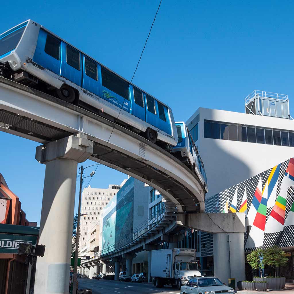 If you want to go across Miami on an elevated transit system, then give the Metrorail a try. Both the Metrorail (aka “The Metro”) and the Metromover connect Miami’s central Downtown hub to outer parts of the city. The Metrorail’s Orange line connects the Dadeland area north through to Miami International Airport, while the Green line starts north at Palmetto and winds its way down to Dadeland. The Metromover, electrically powered and free to ride, operates a smaller inner loop around center of Downtown; an outer loop that ventures north to the Performing Arts Center, and the Brickell loop south to the Financial District.
